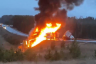 Три большегруза столкнулись на трассе под Нижнеудинском, два из них загорелись