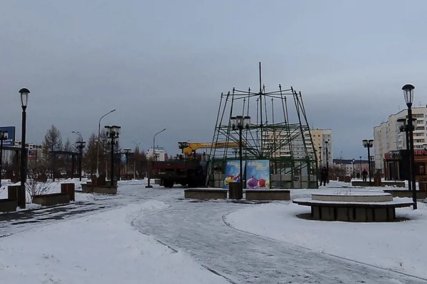В сквере «Ангарские каскады» устанавливают каркас новогодней ёлки