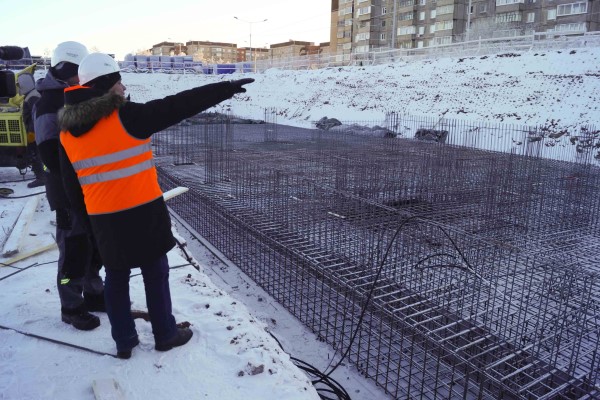 - Сейчас у нас бетонные работы, нулевой цикл. Заливаем фундаментные плиты ниже нуля, армируем основание. В связи с морозами немножко тормознулись по заливке бетона, сейчас отеплит и будем нагонять. На сегодняшний момент порядка 800 кубов уже приняли и армировали где-то 300 тонн арматуры, - рассказал руководитель проекта Владимир Тимофеев.