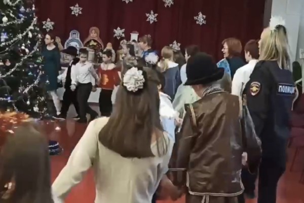 Сотрудники полиции вместе с Дедом Морозом и Снегурочкой поздравили детей с праздниками, вручили сладкие гостинцы, и под новогодние песни завели длинный хоровод вокруг нарядной ёлочки.