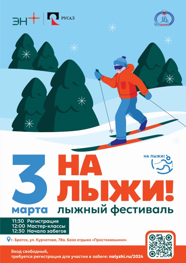 В Братске лыжный фестиваль пройдет 3 марта на базе отдыха «Простоквашино». Все желающие могут испытать дух соревнований на подходящей по возрасту дистанции. Регистрация на забег начнется в 11.30, а праздничная программа для болельщиков и спортсменов продлится с 12 до 14 часов. Детей и взрослых ждут весёлые старты, конкурсы, игры и развлечения.
