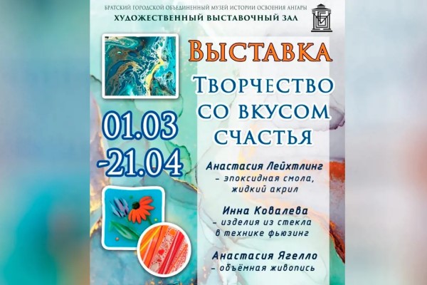 Три братские художницы Инна Ковалёва, Анастасия Лехтлинг и Анастасия Ягелло подарят ценителям творчества возможность прикоснуться к прекрасному. В преддверии Международного женского дня сотрудники Художественного выставочного зала подготовили для братчан выставку «Творчество со вкусом счастья».