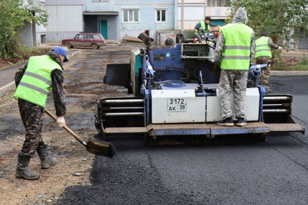 При благоустройстве дворов проводится ремонт асфальтового покрытия внутриквартальных проездов, тротуаров, парковочных площадок, обустройство новых тротуаров и парковок, установка скамеек и урн. На некоторых объектах также проводится обустройство подпорных стенок. Отметим, что при выполнении благоустройства дворов подрядные организации осуществляют синхронизацию работ на смежных участках - чтобы не оставалось разрушенных тротуаров, проездов, примыканий и др.