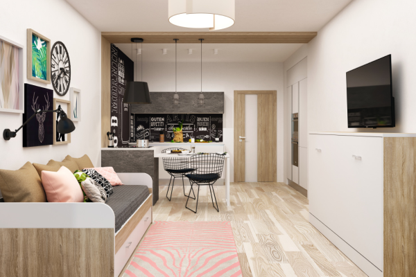 Еще одним важным условием является то, что общий стиль помещения должен совпадать. Таким образом при помощи зонирования у каждого члена семьи появится свое личное пространство, в котором он сможет уединиться.
