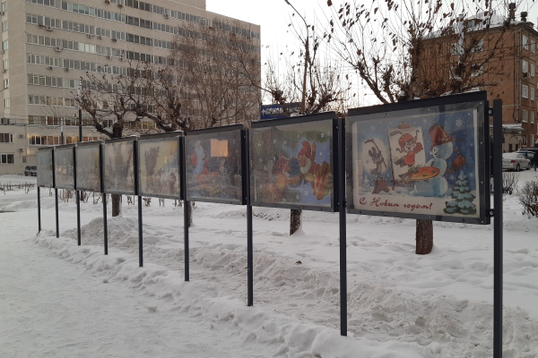 Улицу Кирова в Братске украсили стенды с новогодними открытками