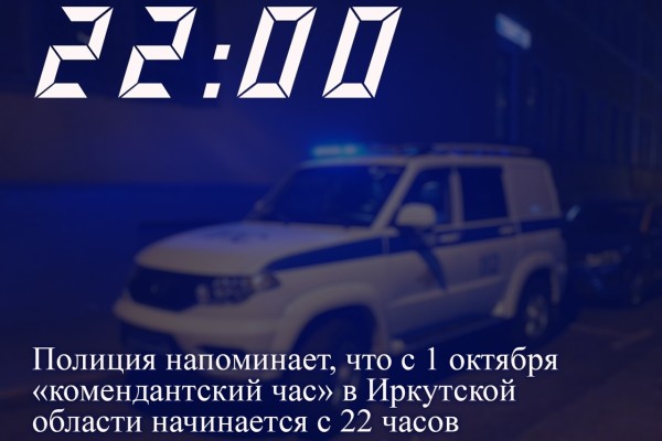 С 1 октября «комендантский час» для несовершеннолетних в Иркутской области начинается в 22 часа. Об этом сообщает пресс-служба ГУ МВД по Иркутской области.