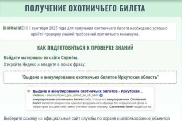Жители Иркутской области, желающие получить охотничий билет, должны пройти проверку знаний охотничьего минимума. Новая процедура стала обязательной для всех кандидатов с 1 сентября 2025 года.