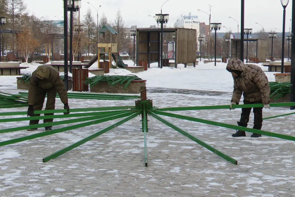 Главную новогоднюю ёлку начали устанавливать в Братске