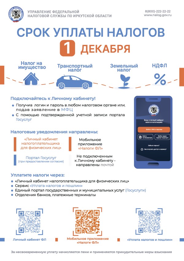 Налоговая служба напоминает: уплатить налоги в этом году необходимо до 1 декабря 2025 года.