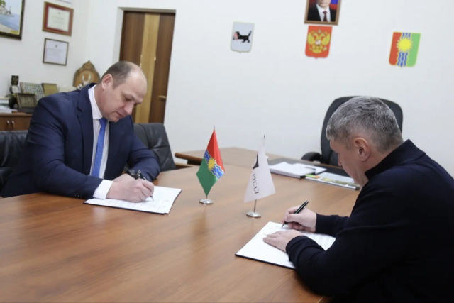 Управляющий директор БрАЗа Игорь Волохов и мэр Братска Александр Дубровин подписали Соглашение о сотрудничестве в реализации проекта «Строительство крытой ледовой арены по хоккею с мячом» в Братске.
