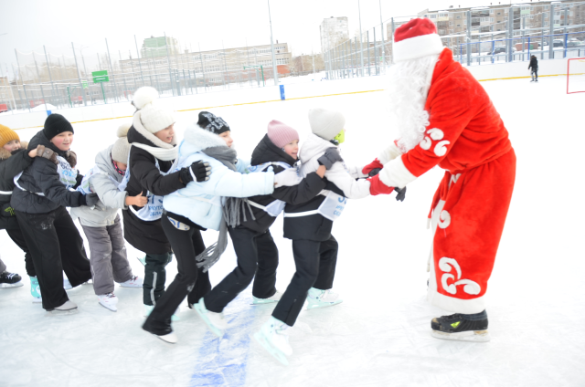 Для ребят организаторы подготовили подвижные командные эстафеты на волейбольной площадке, на соседнем поле дети сыграли в футбол. Кульминацией события стали веселые старты на ледовой площадке с участием школьных команд. Атмосферу праздника создавали Дед Мороз и Снегурочка, в роли которых выступили директора школ Сергей Федоров и Елена Гребенникова.
