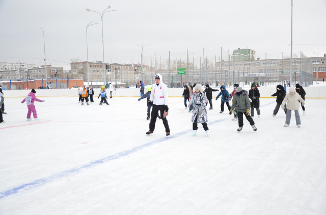 В первый день новогодних каникул на стадионе школ №14 и 16 состоялось открытие ледовой площадки. Участниками события стали более 100 человек – ученики, преподаватели, родители школьников.