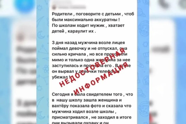 Правоохранители проверили эту информацию. По их данным, в полицию не поступало ни одного заявления о нападениях на детей. Больницы и экстренные службы города также не фиксировали подобных обращений. Полицейские просят жителей не поддаваться панике и доверять только проверенным источникам.