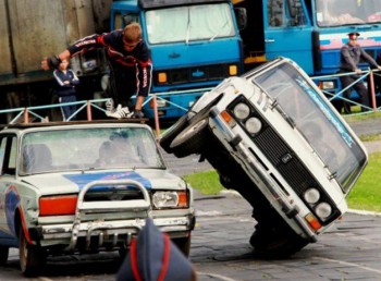 Горящий человек, двигаясь вдоль трибун, обжигает первые ряды. На этом шоу бесстрашные артисты горят, укрощают автомобили и просто для потехи показывают актёрское представление, где даже старая "бабушка" дрифтует всеми четырьмя колёсами.