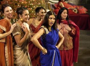 Позже публика поняла, что готовится что-то необычное. Эти девушки вышли из толпы, когда зазвучал индийский мотив. Для Братска подобного рода флэш - мобы все же новинка. Евгения Васильева, организатор флэш-моба, рада, что одежда для таких танцев в этот день выбрана теплая: джинсы и пиджаки. Индийское сари не лучшая форма в такую погоду.